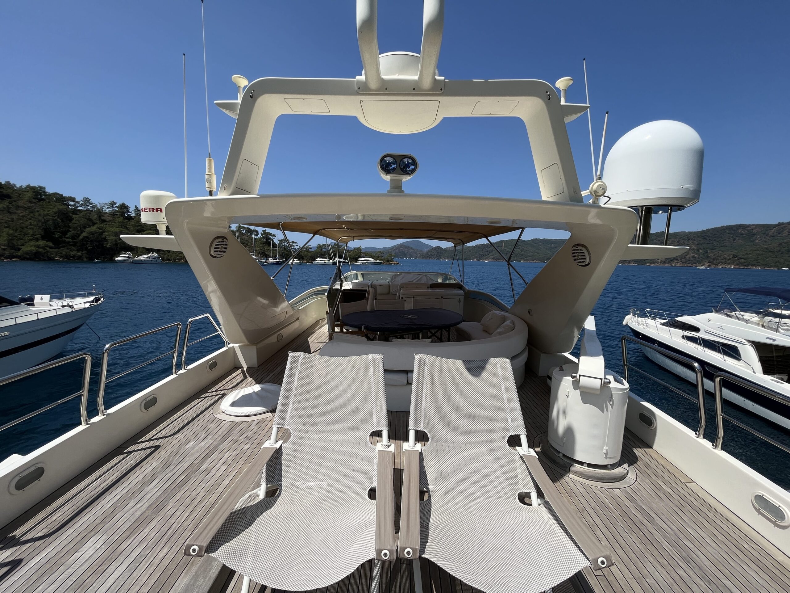 Azimut 85 built in 1999 for sale from her second owner. She was maintained in high standards and always used privately. Equipped with 2x MTU 1550 Hp Engines with only 2300 hours. Yacht can be seen in Göcek with prior notice. Good deal for 4 cabins flybridge motor yacht in great condition, ready for using immediately.