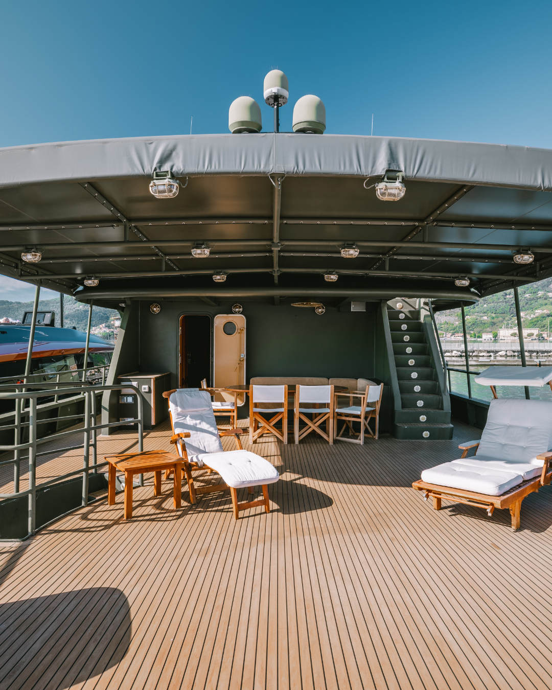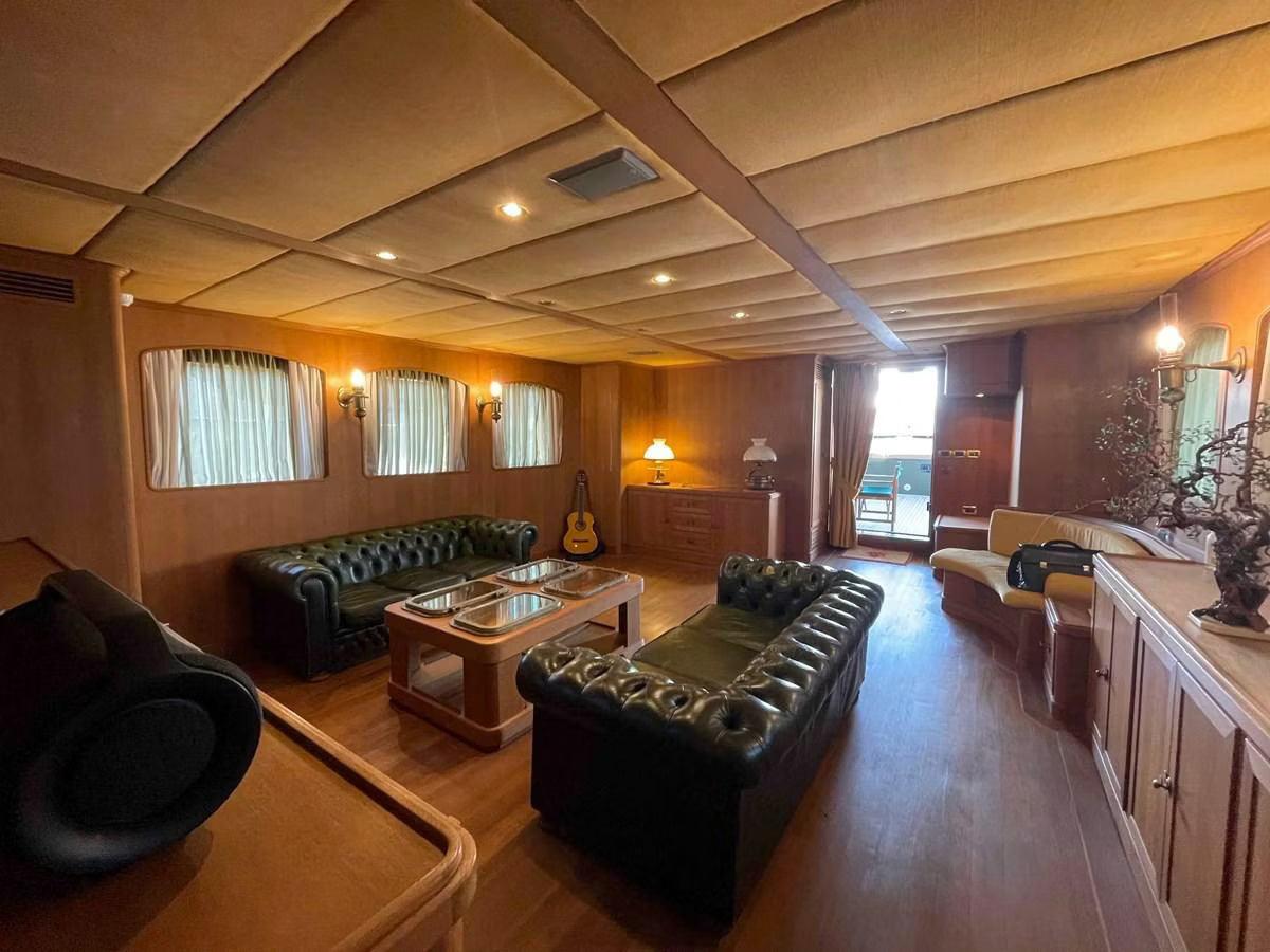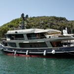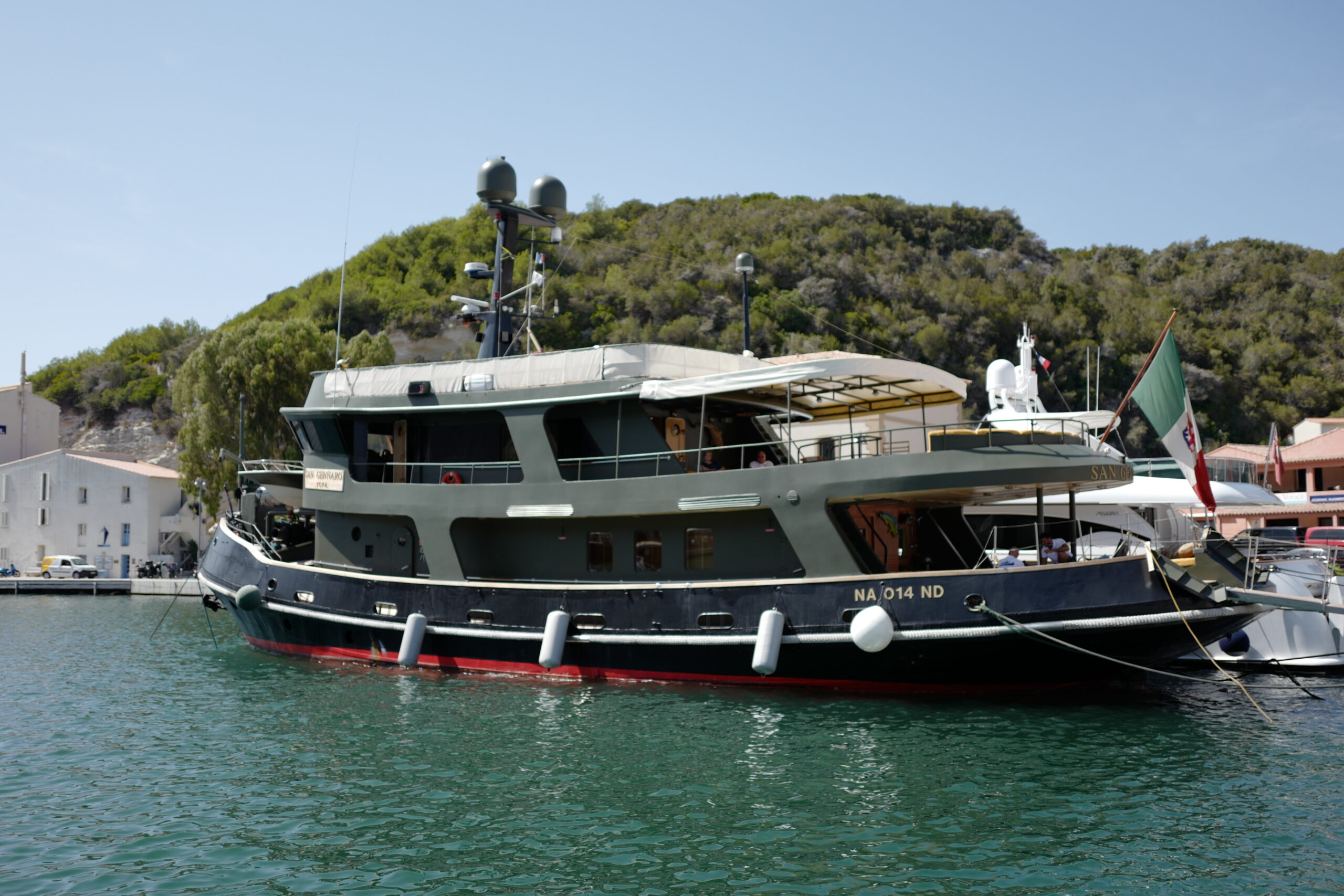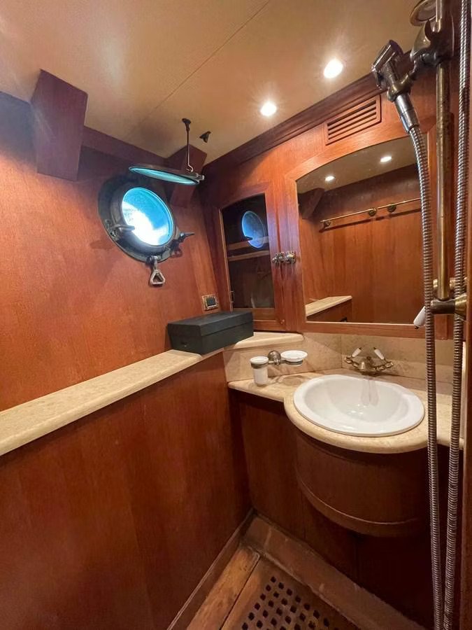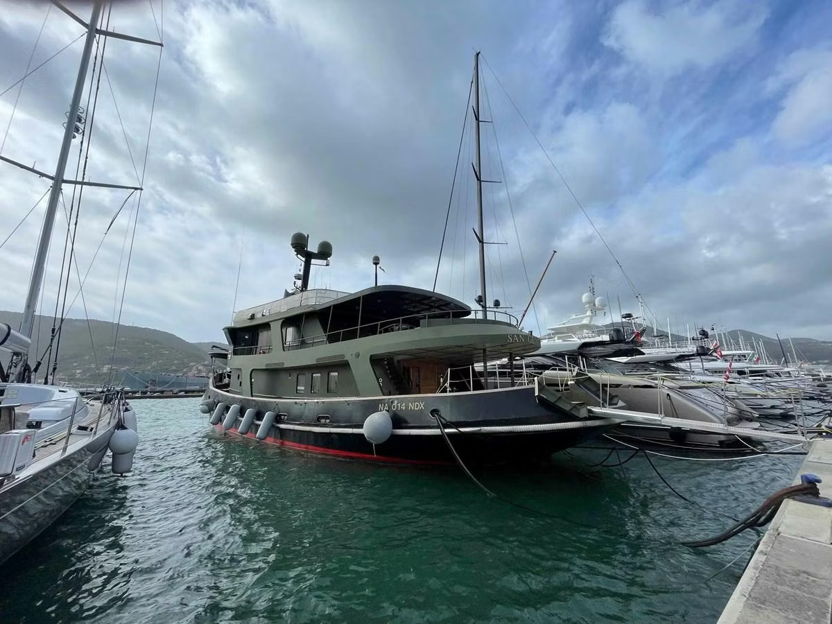 A BENETTI 29 TUGBOAT, built in 1964, is a beautifully restored 29-meter yacht and has been transformed into a sophisticated private yacht. Featuring a striking black hull and military green superstructure, the yacht combines classic maritime charm with modern comfort and performance.
