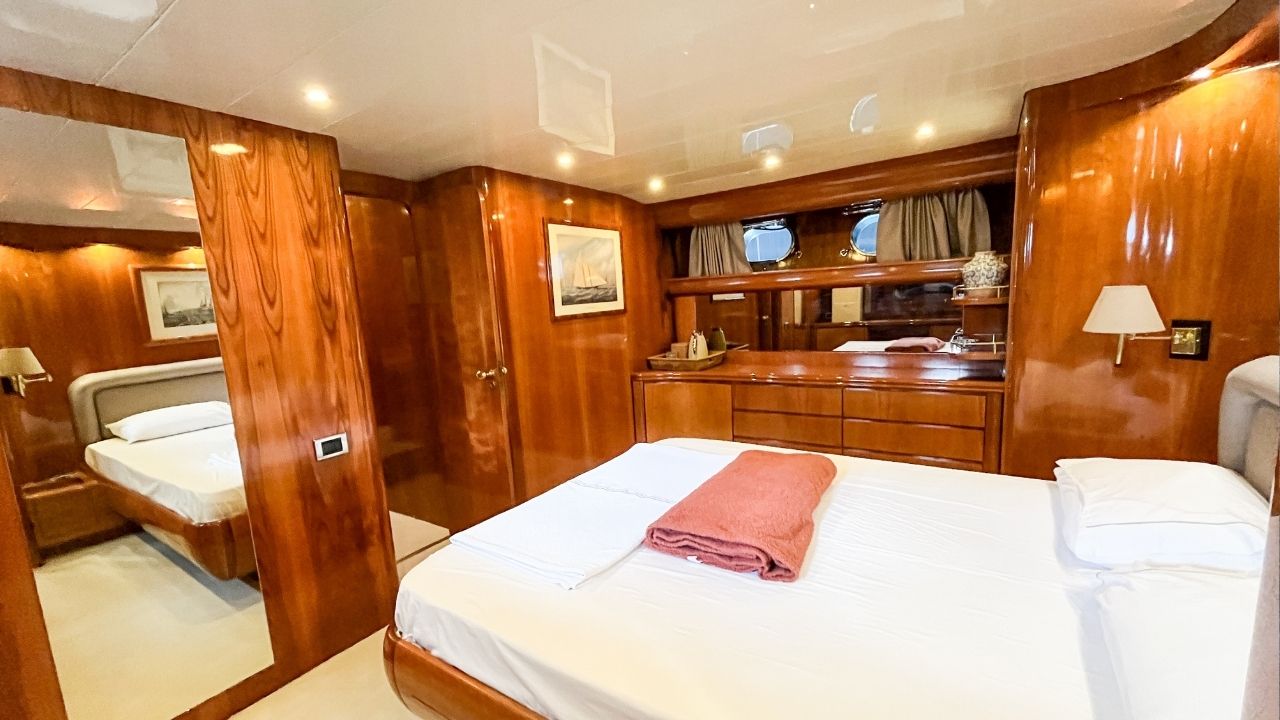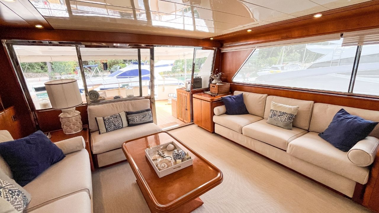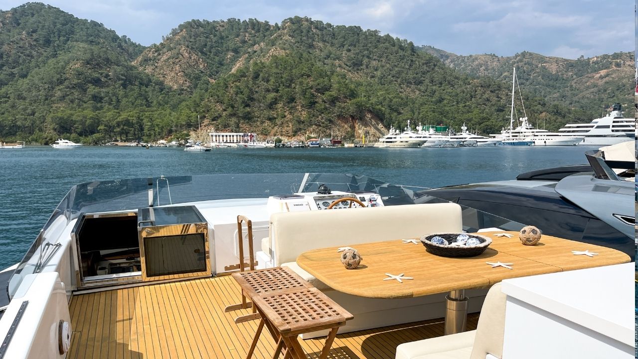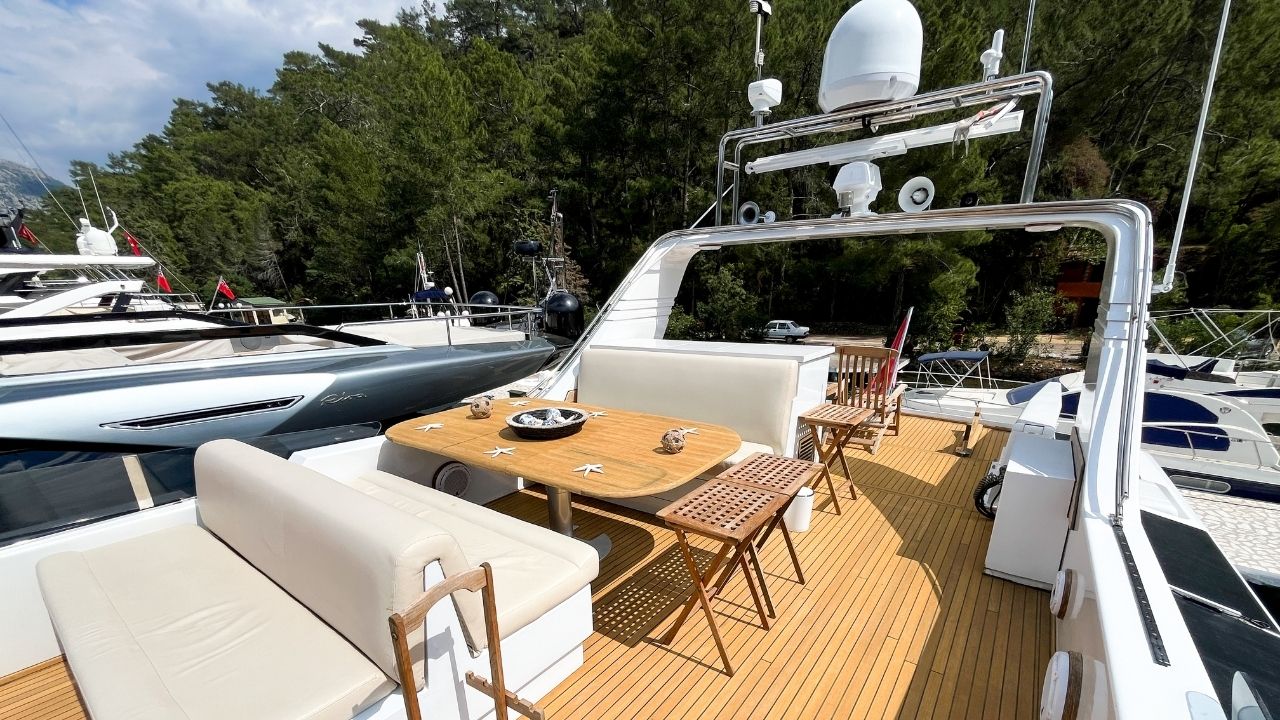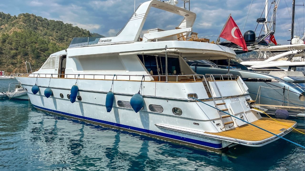 Turkish flagged 24 meter Canados, which has been regularly serviced, is offered for sale ready for the season. One of the most successful models of the Italian Canados shipyard, this 24 meter motor yacht is a boat that you can use for many years with an affordable budget with its spacious 4 cabins, useful saloon and pleasant Flybridge that offers seating and sunbathing.