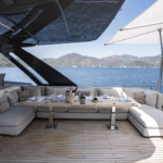Ferretti Yachts 920 is a maxi flybridge with imposing, dynamic lines, a range of spacious areas for relaxation and sophisticated interior furnishings, making it one of a kind in its category.