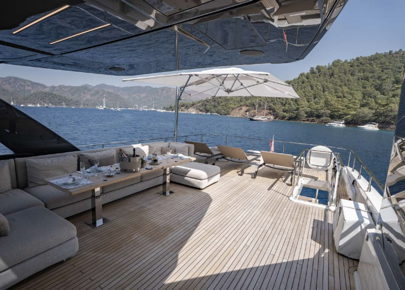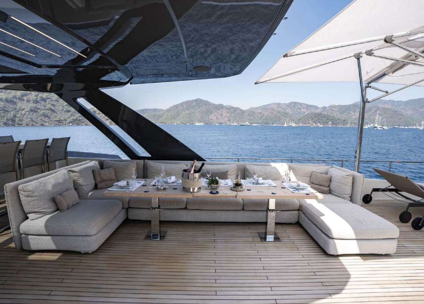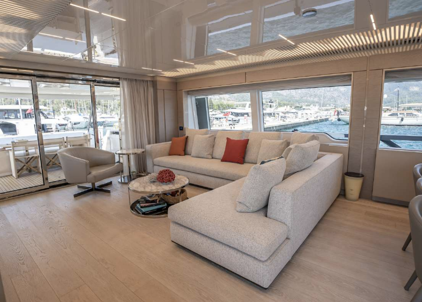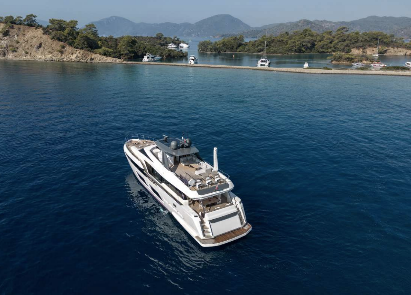 Ferretti Yachts 920 is a maxi flybridge with imposing, dynamic lines, a range of spacious areas for relaxation and sophisticated interior furnishings, making it one of a kind in its category.
