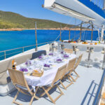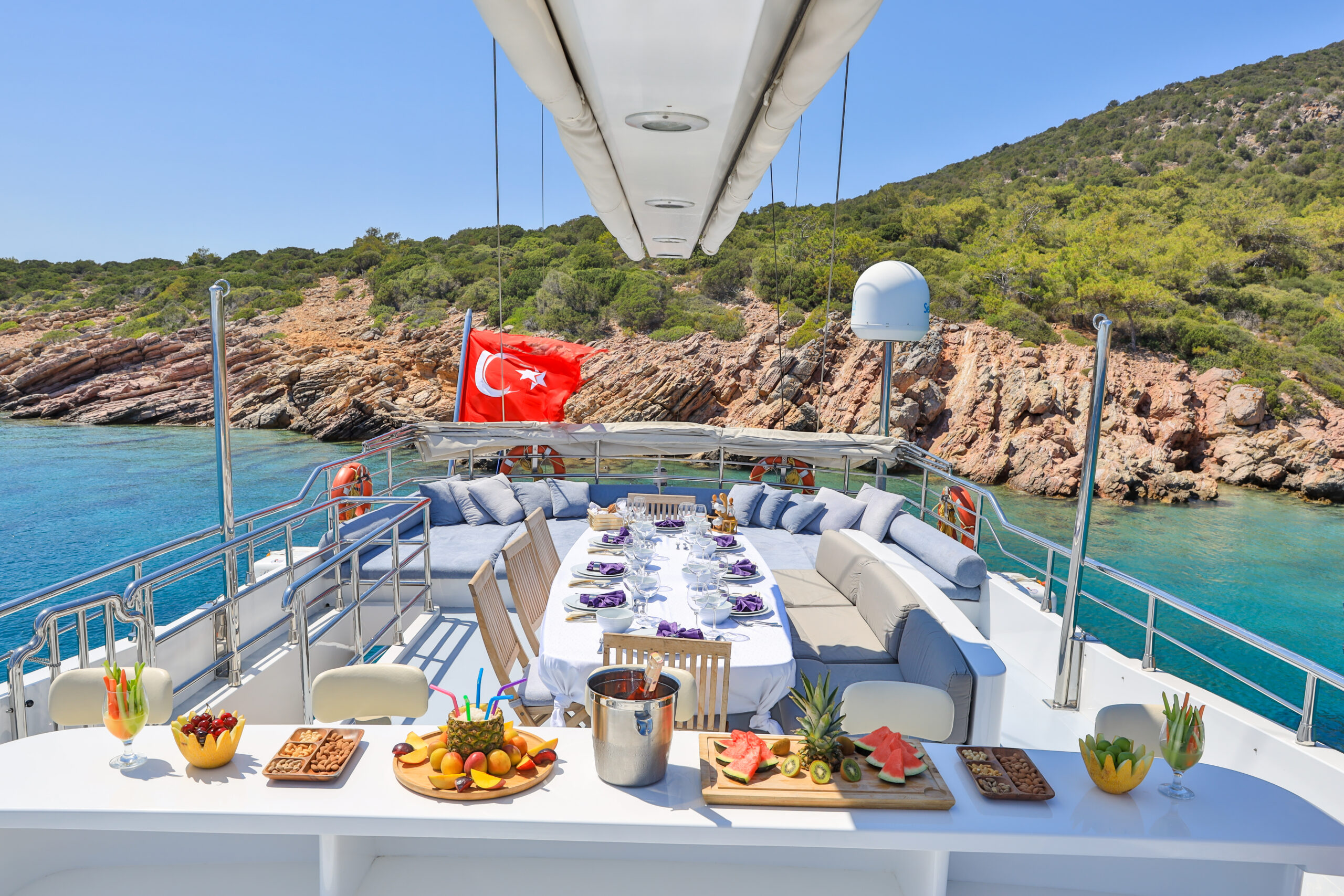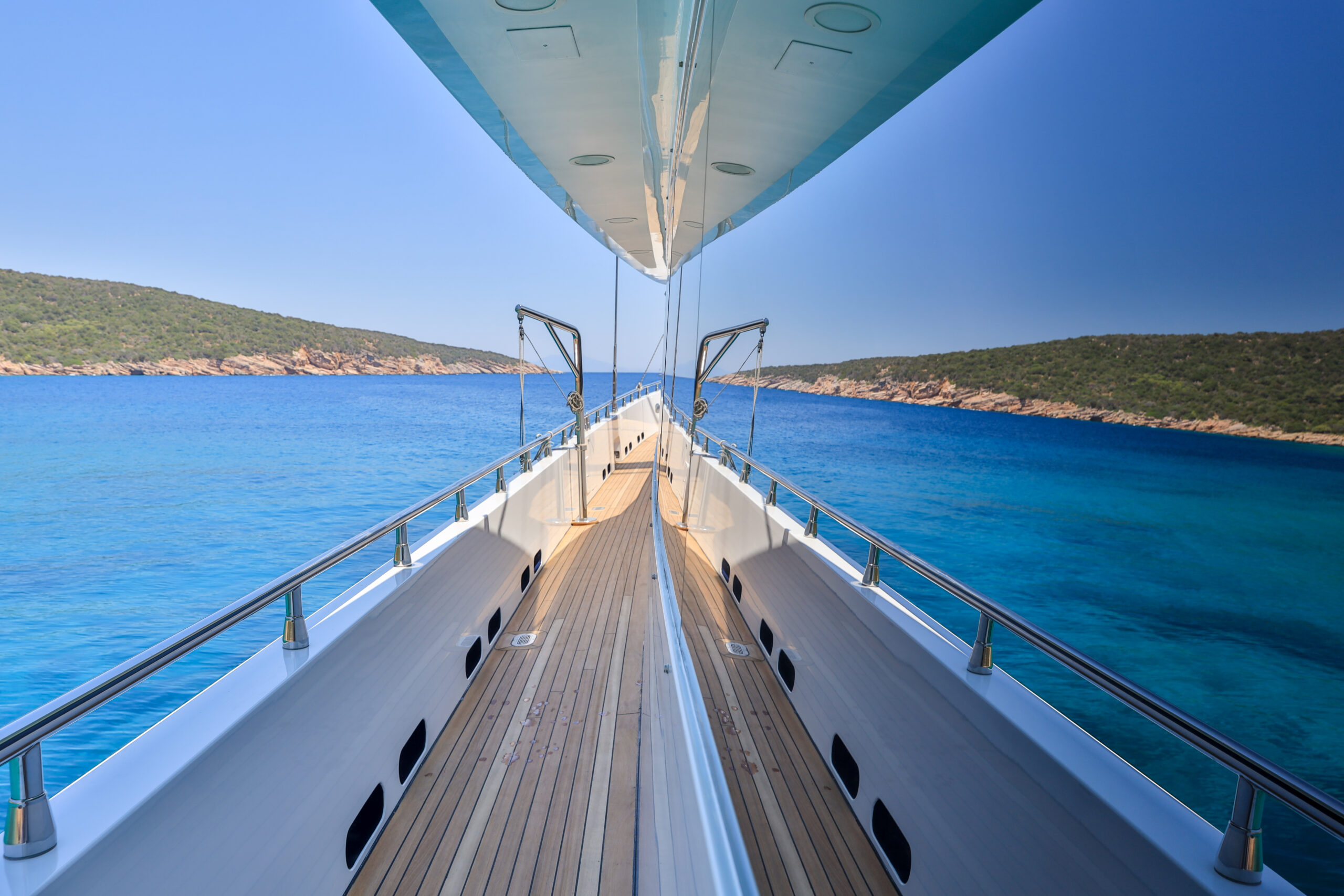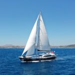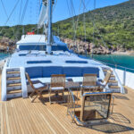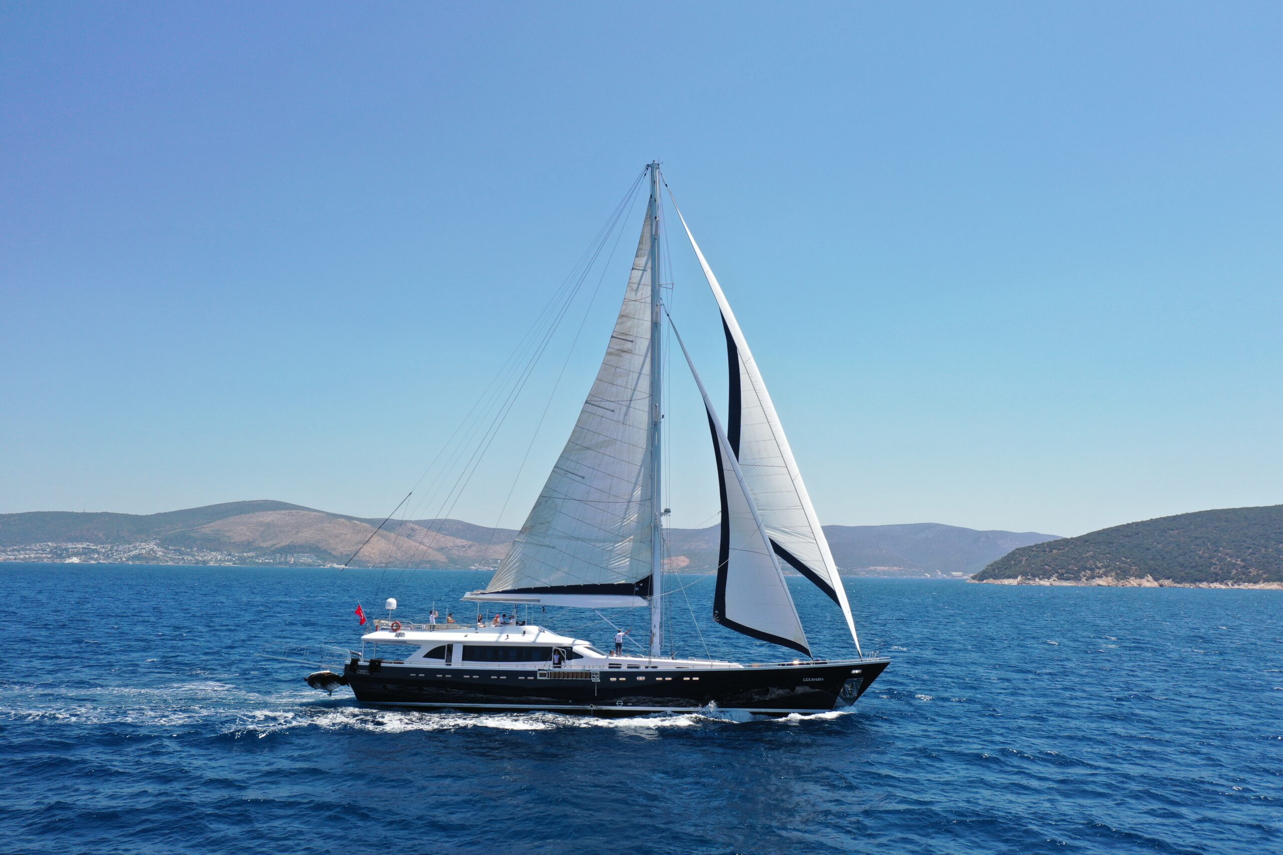 Discover the “Gulmaria”, a 38-meter sailing yacht combining modern luxury with impressive performance. Built in Turkey, she boasts a standout feature: a rare flybridge, offering expansive sea views.