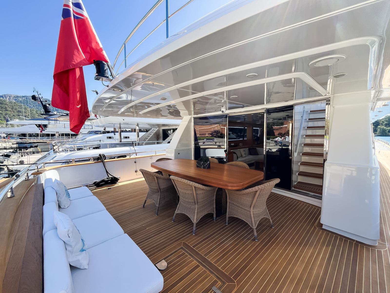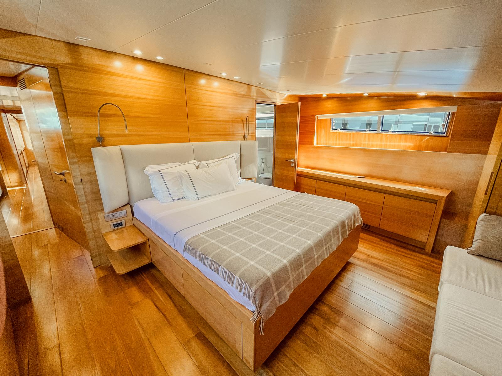 This 29.1 meter motor yacht showcases Sanlorenzo’s signature Italian craftsmanship, combining refined elegance with exceptional build quality. With low engine hours, and a top speed of 27 knots, she offers both performance and efficiency. Designed for luxurious cruising, Orient Star accommodates up to 8 guests in 4 en-suite cabins, offering ample living space and timeless comfort.