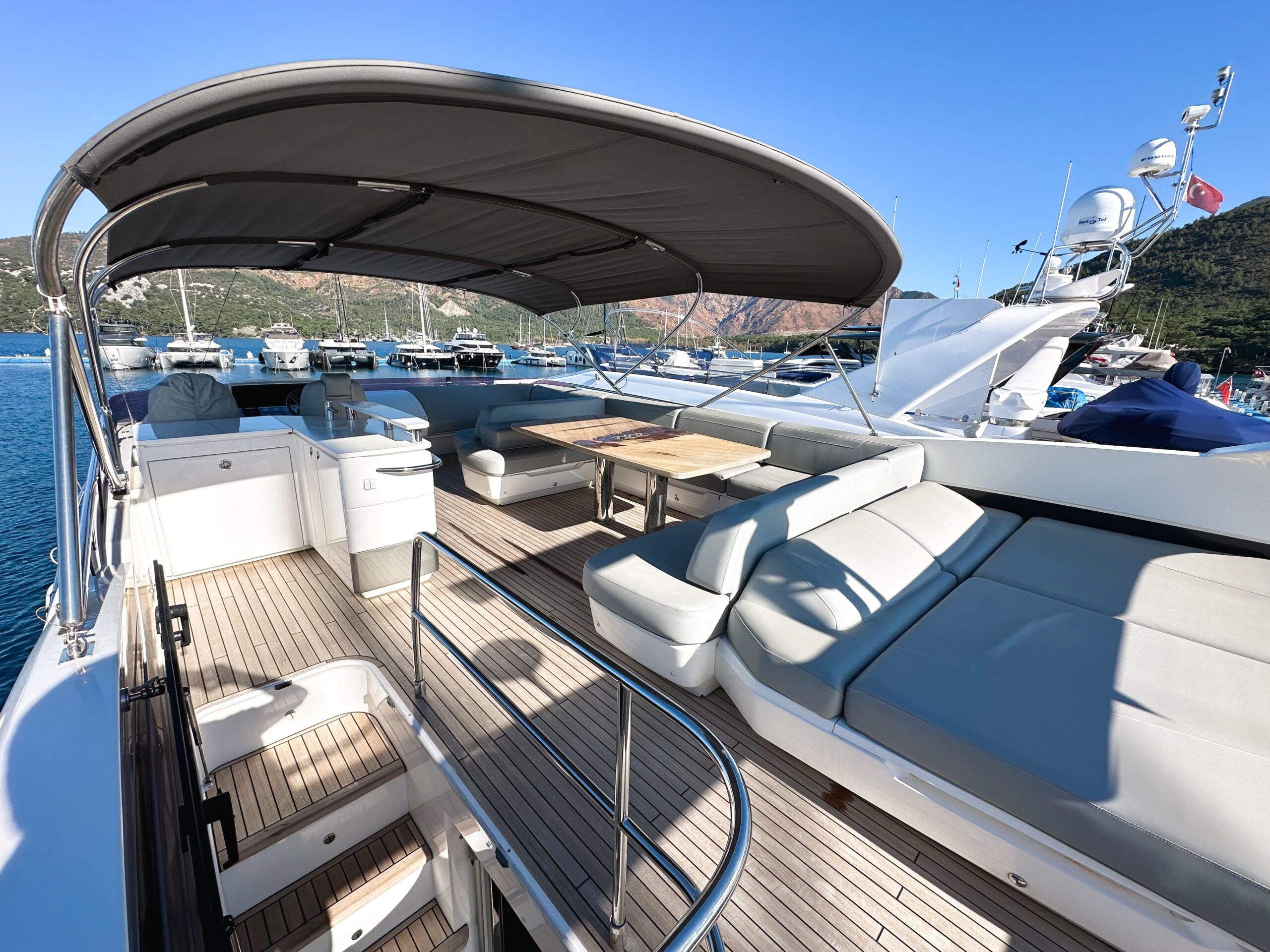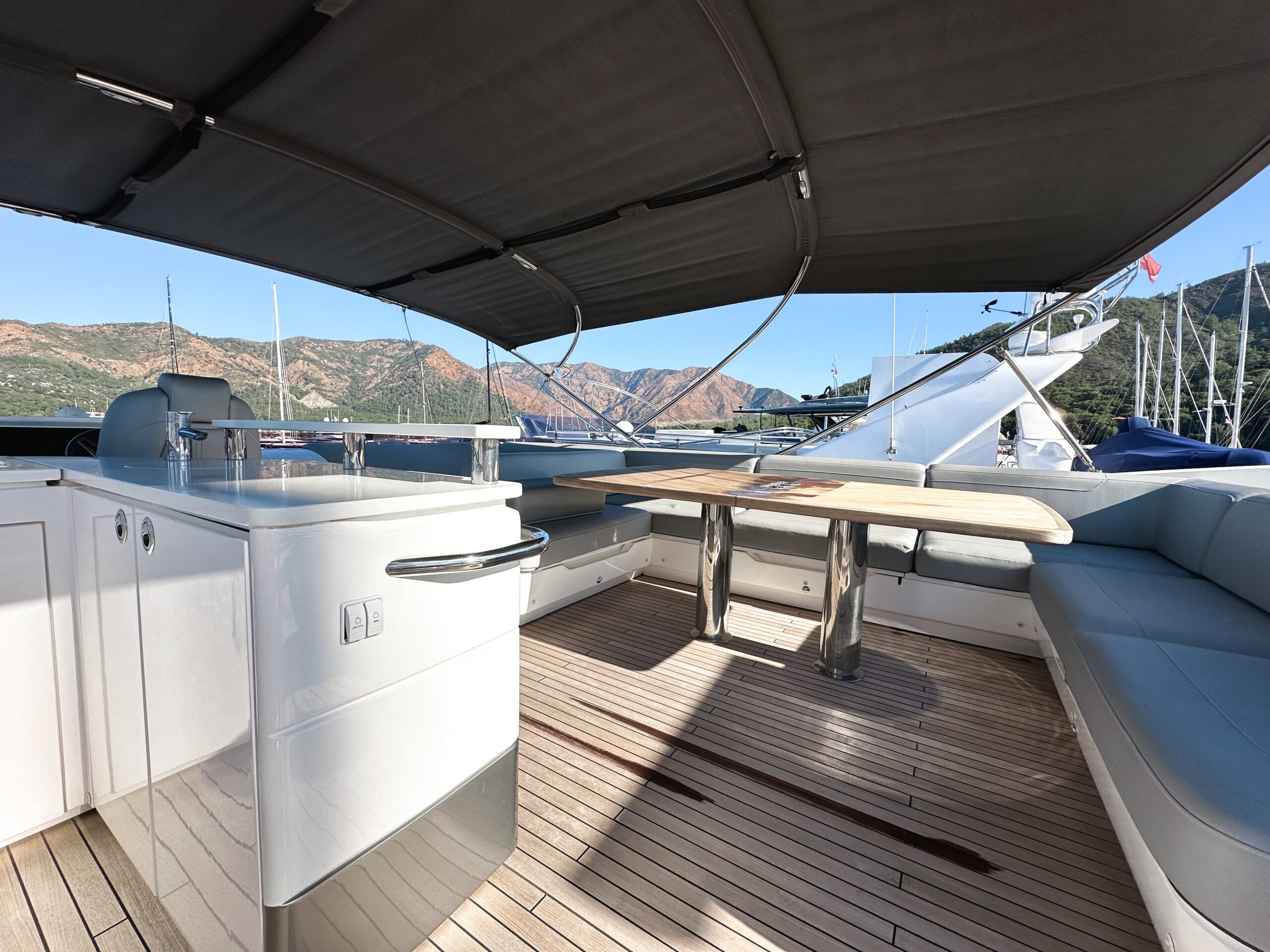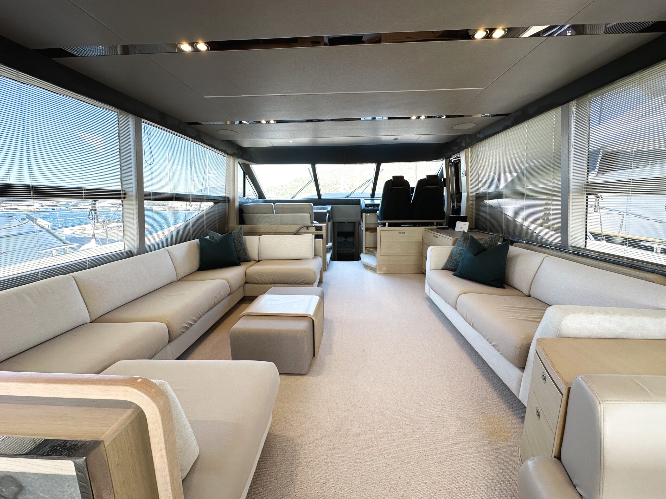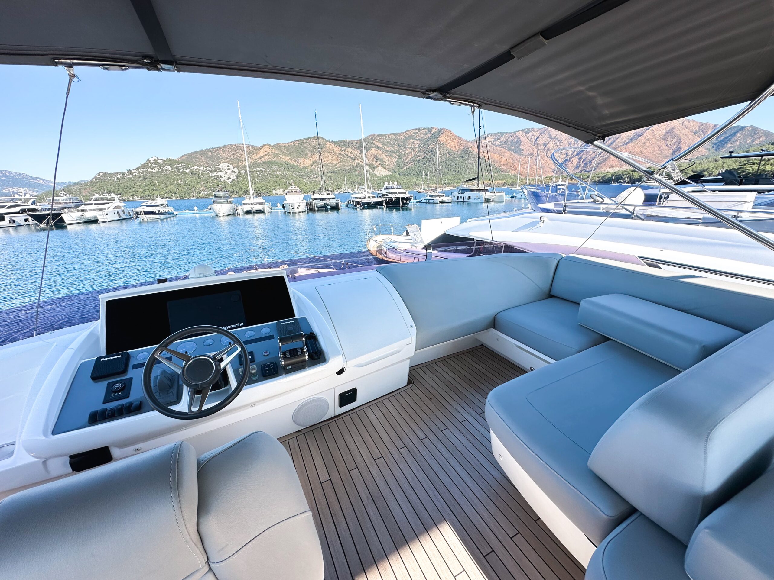 Embark on a journey of unparalleled luxury with this exquisite Princess F70 Flybridge, a testament to maritime engineering and elegance. Currently available from its first owner, this yacht epitomizes pristine condition and meticulous maintenance.