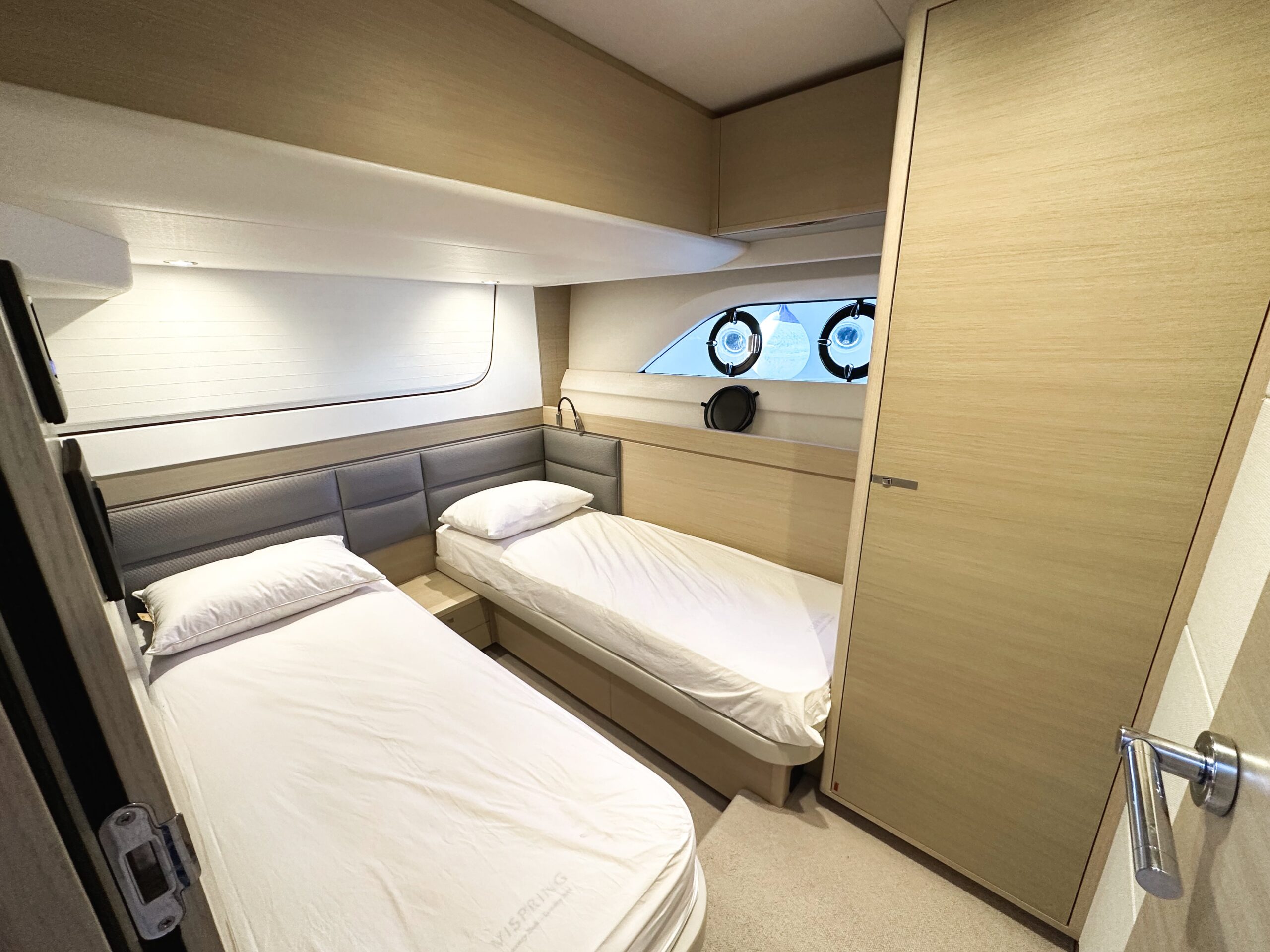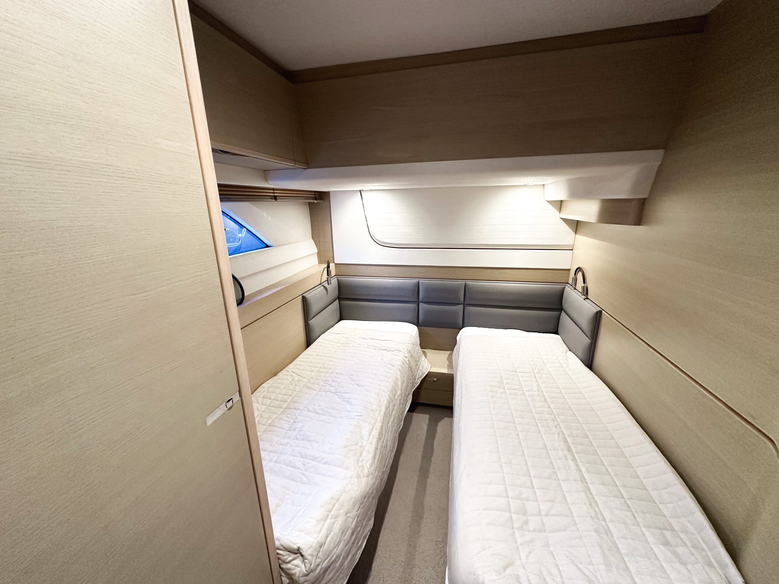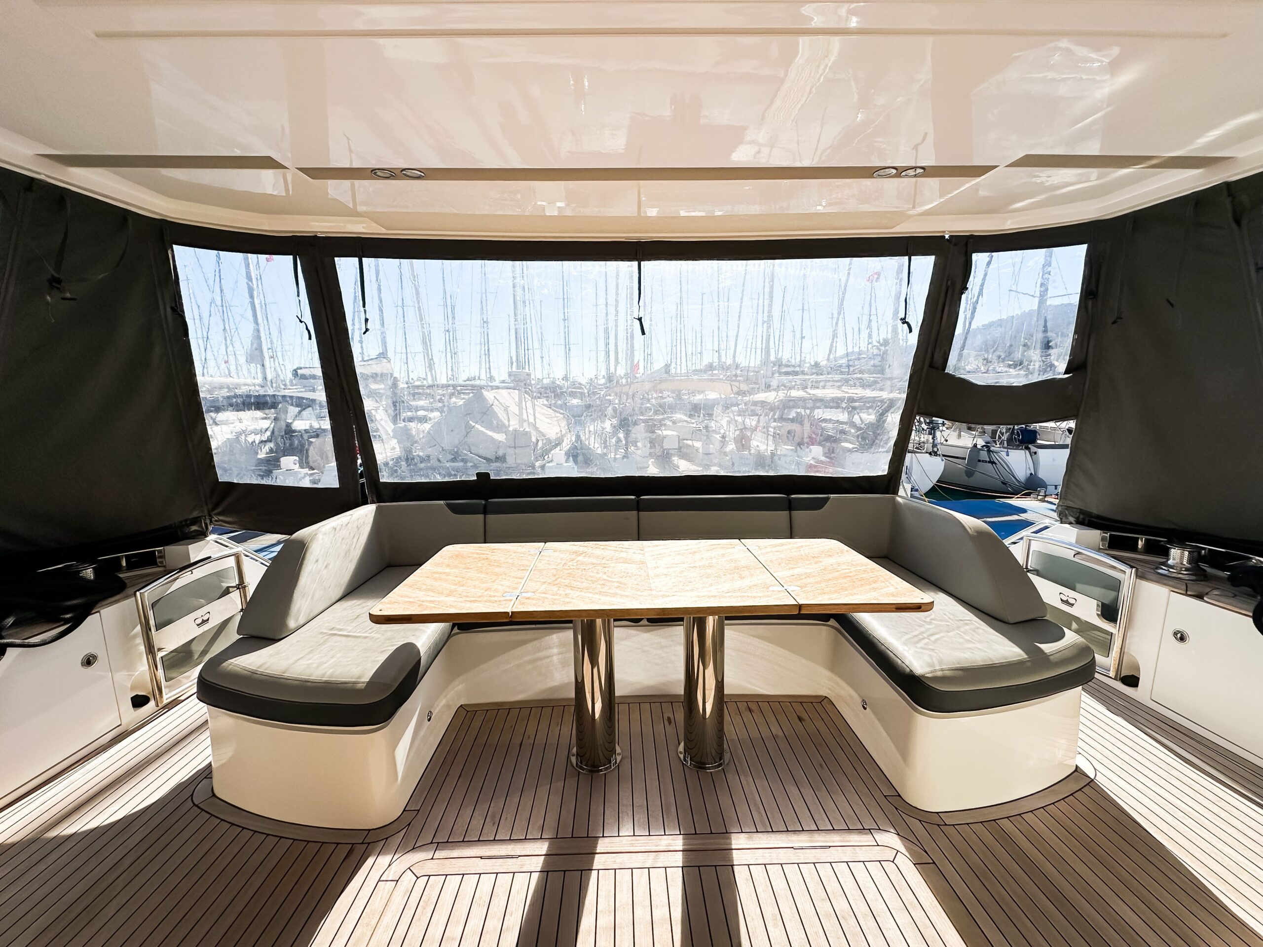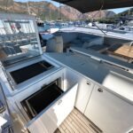 Designed to comfortably house 8 guests across 4 beautifully appointed cabins, this vessel also boasts a dedicated crew cabin for 2 at the aft. The interior showcases a seamless blend of style and functionality, with the saloon merging into the aft deck to create a grand open space, complemented by a state-of-the-art galley.